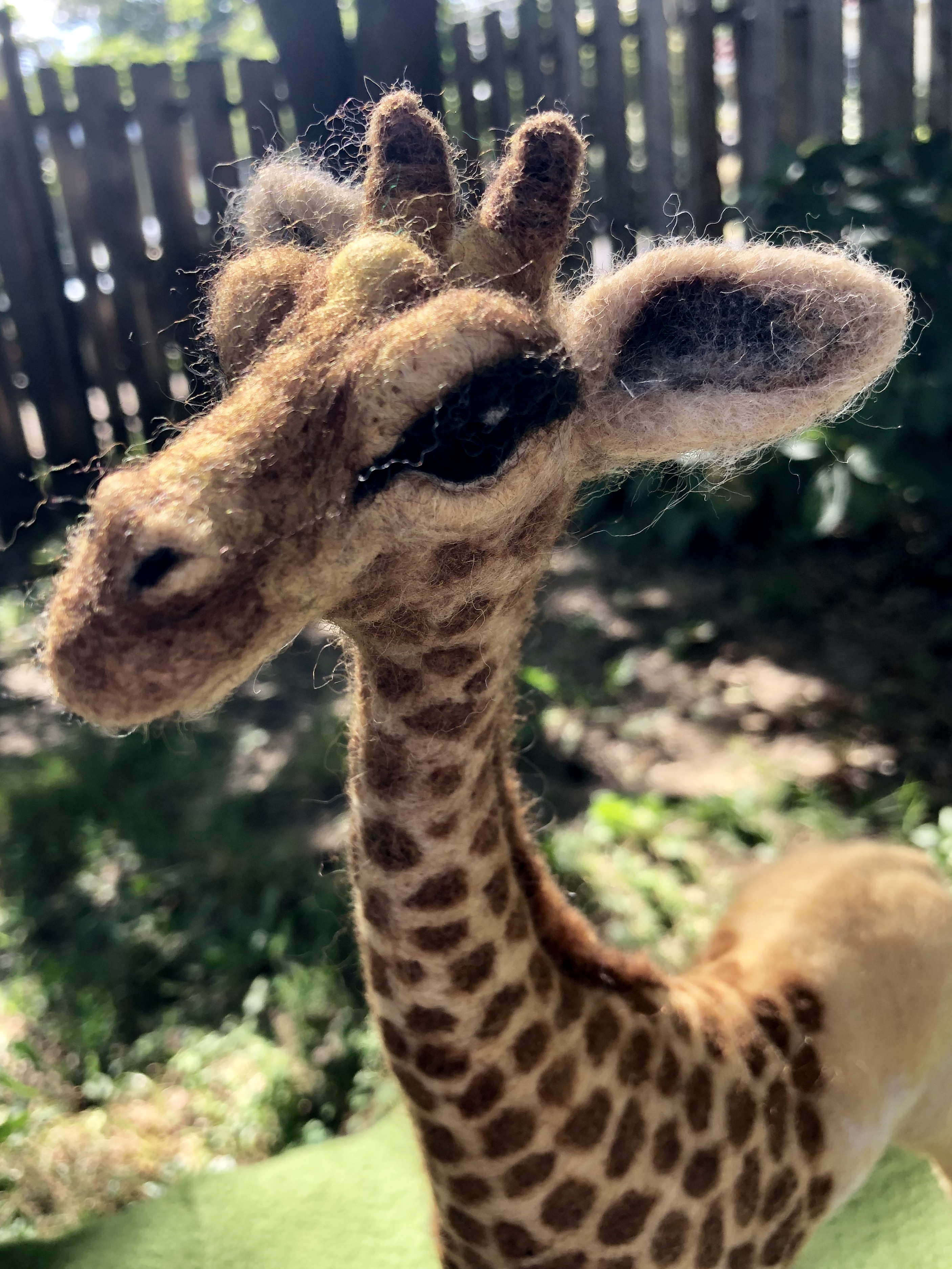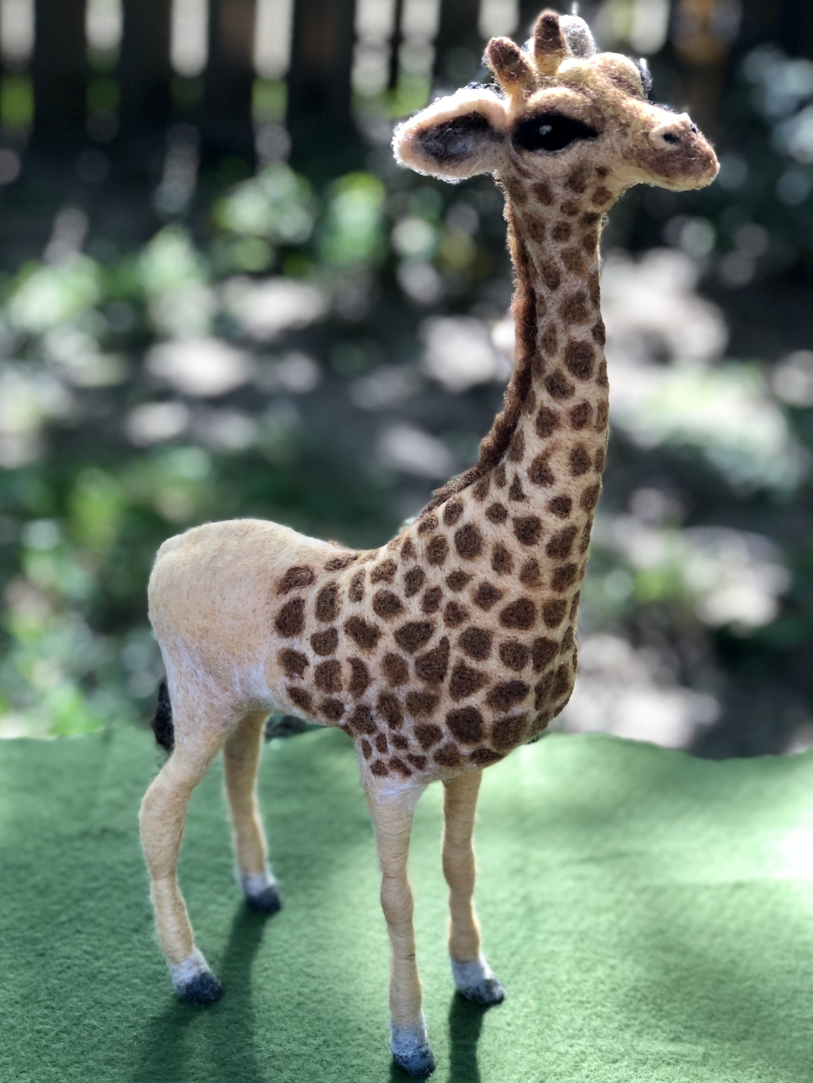 Needle felted giraffe still in progress, but very close to being complete. Wool over a wire armature.