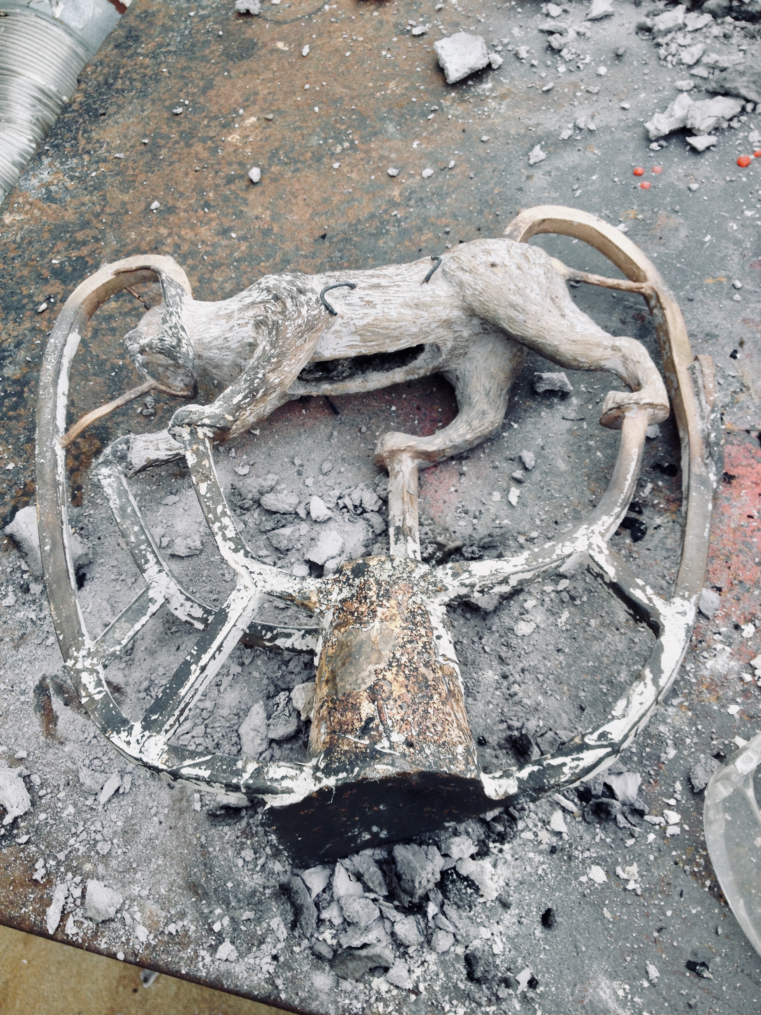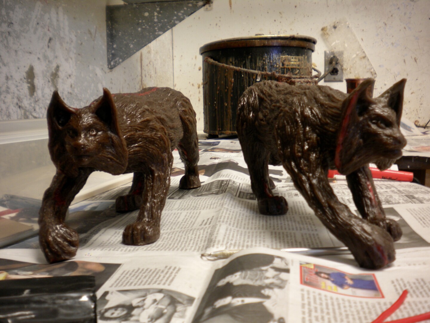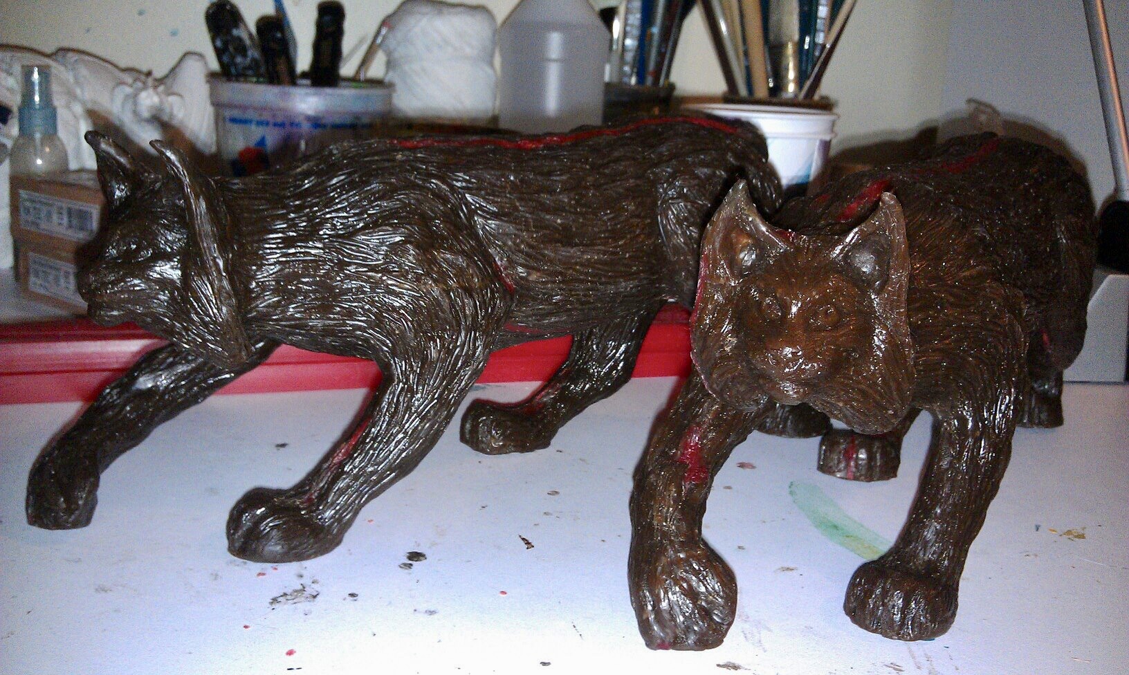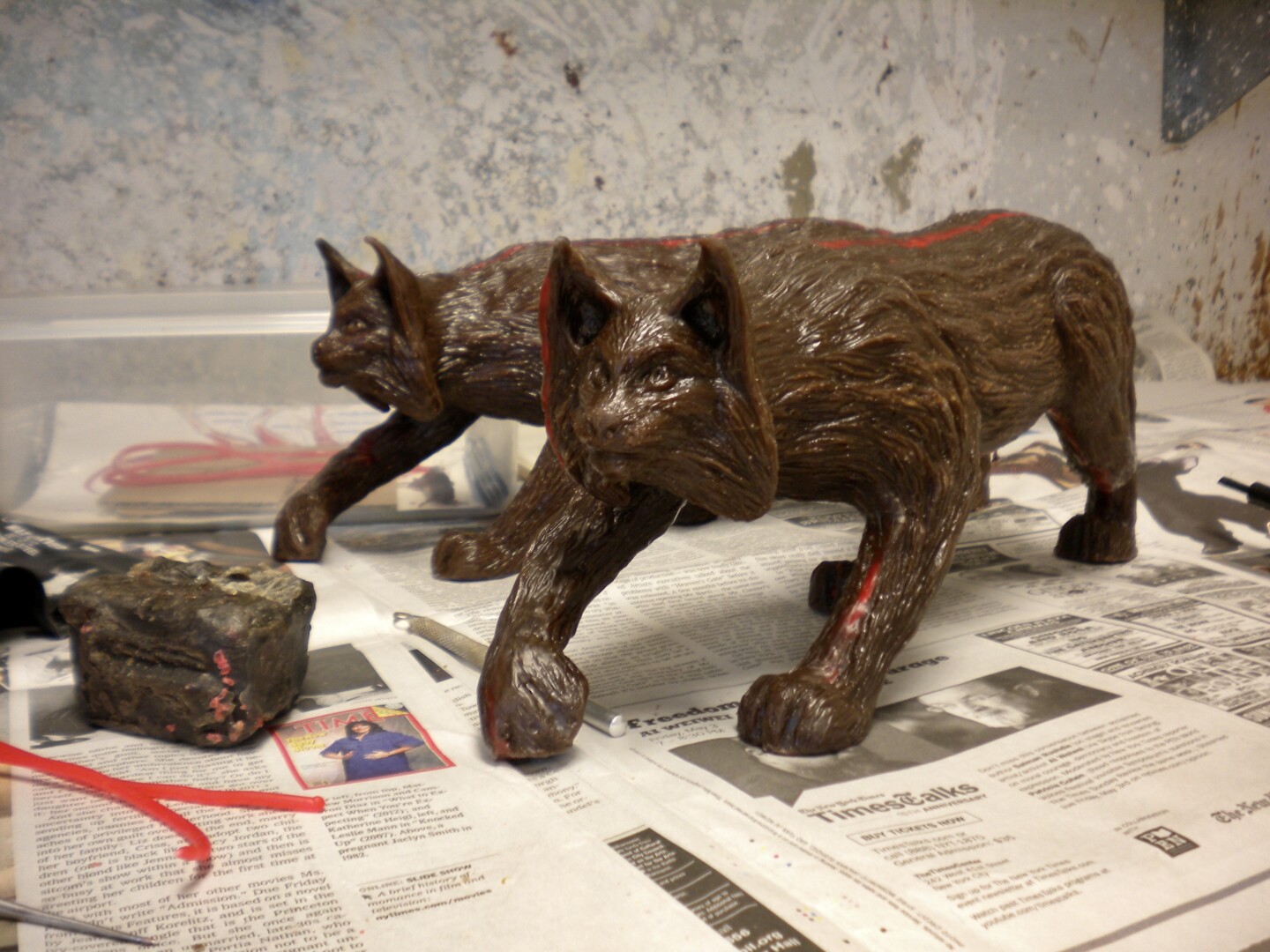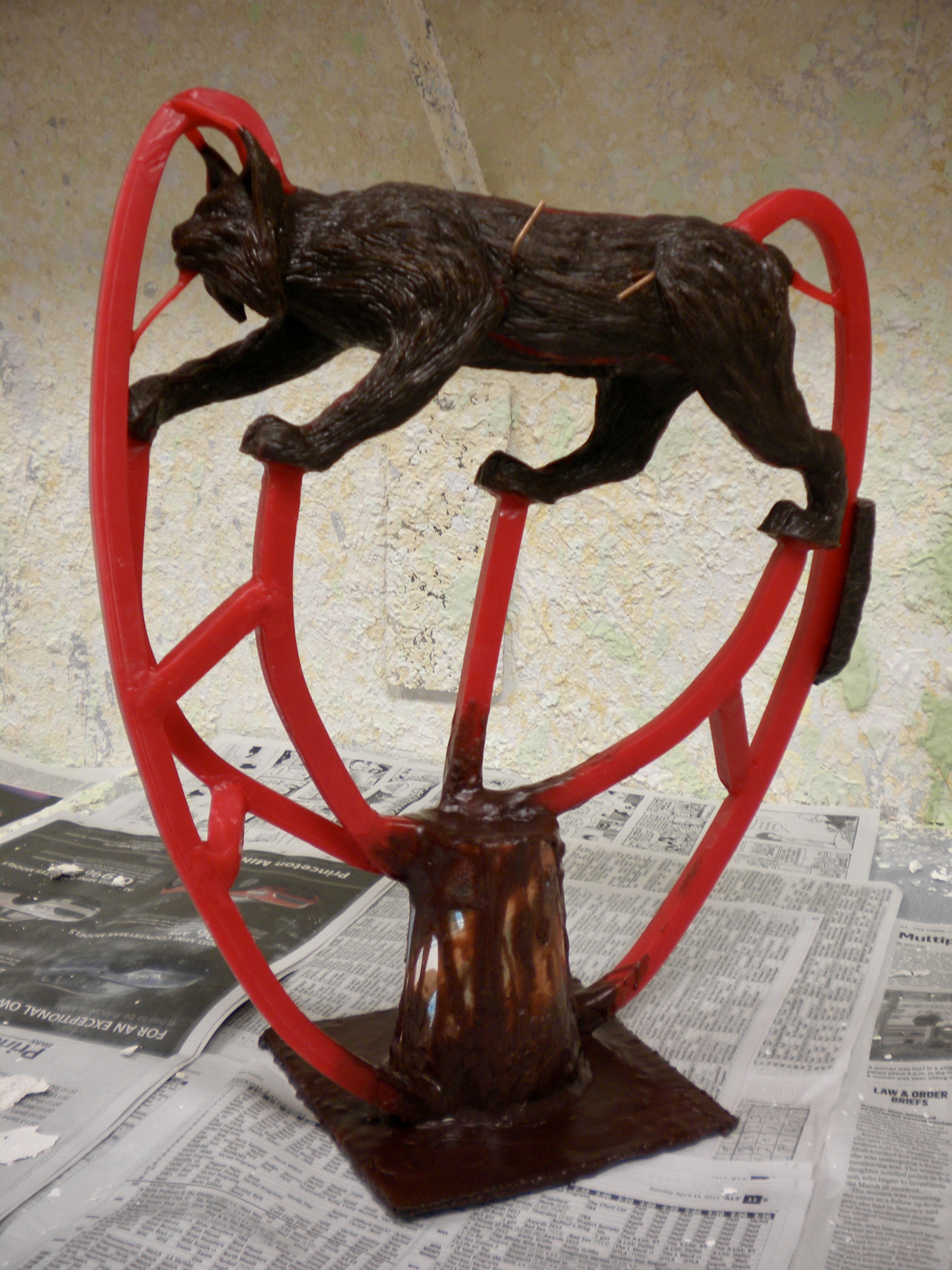 Bronze sculpture of a lynx mounted on granite. Second lynx is still in progress.