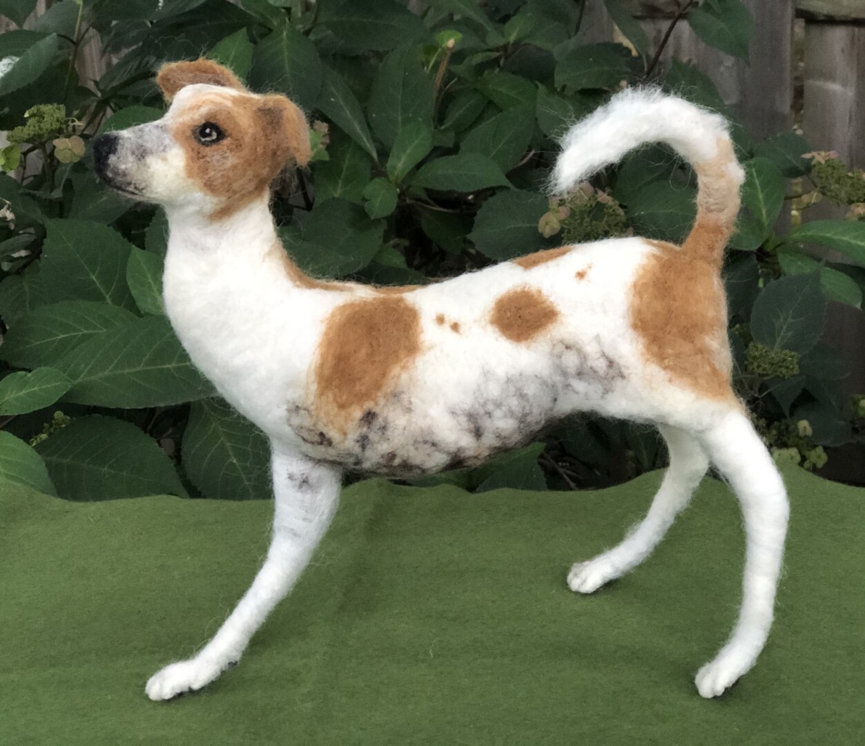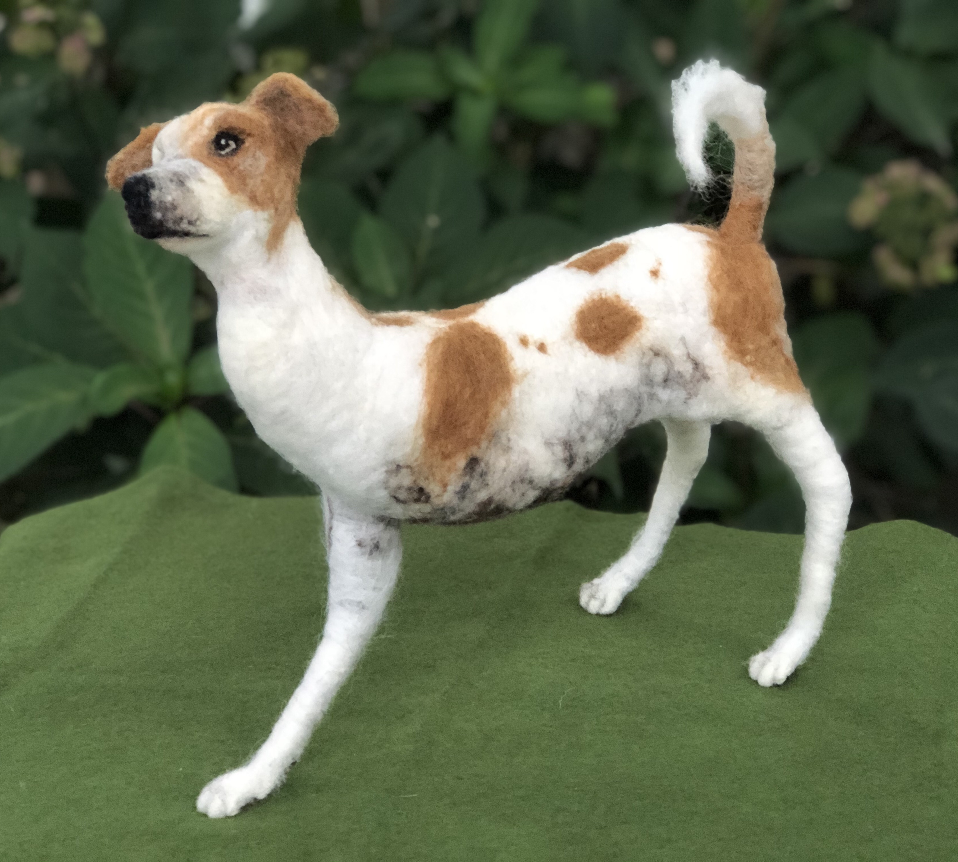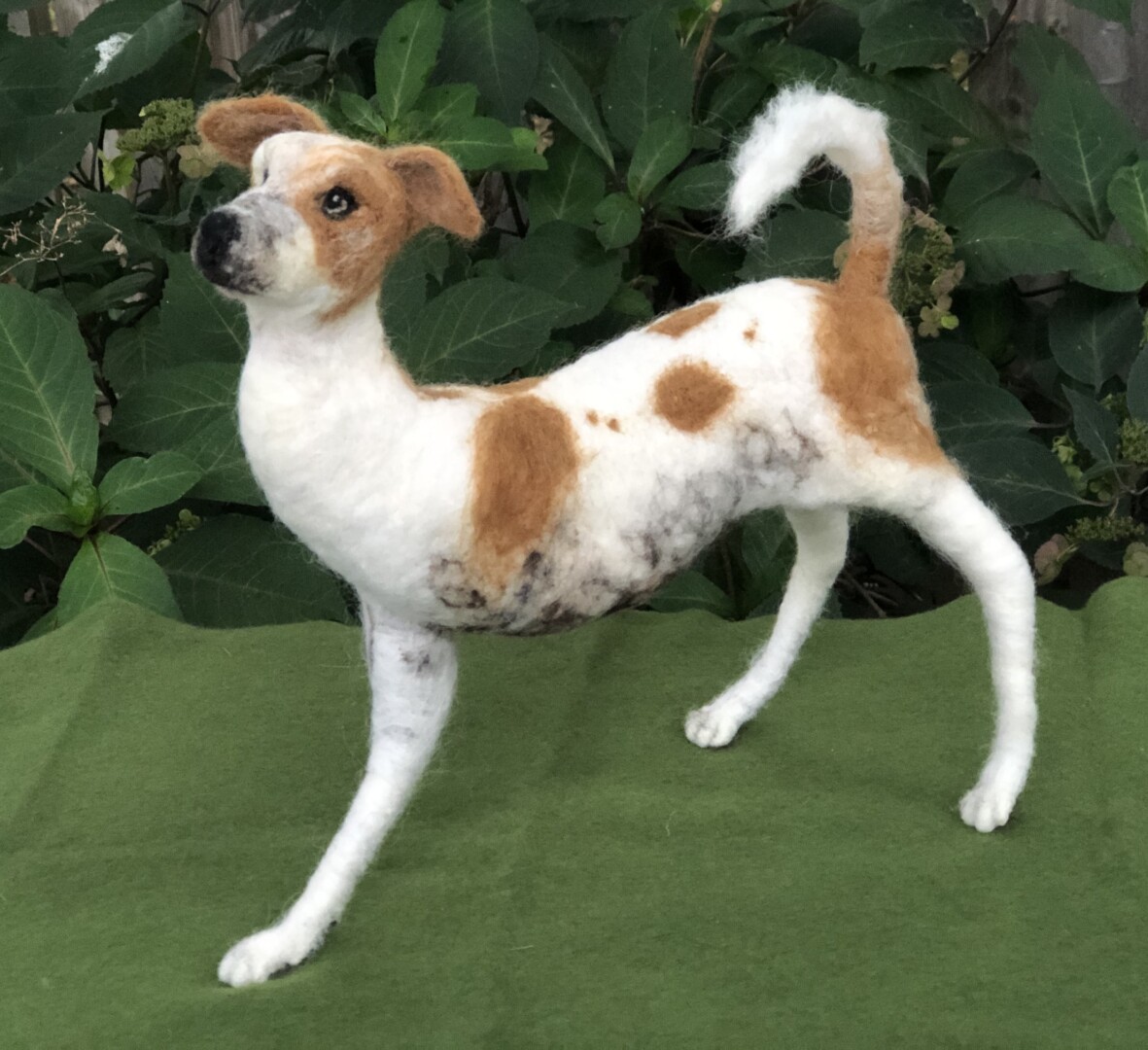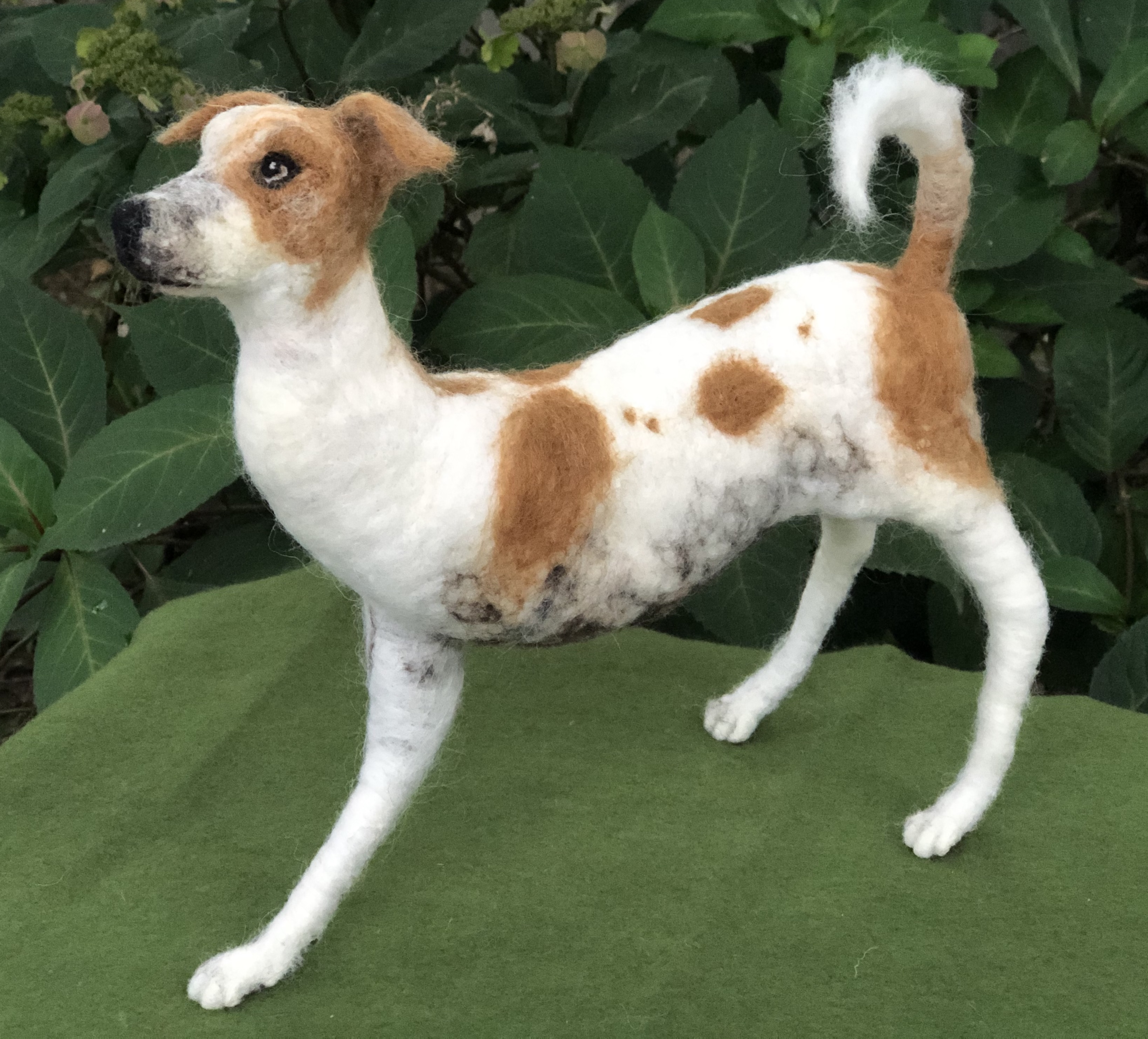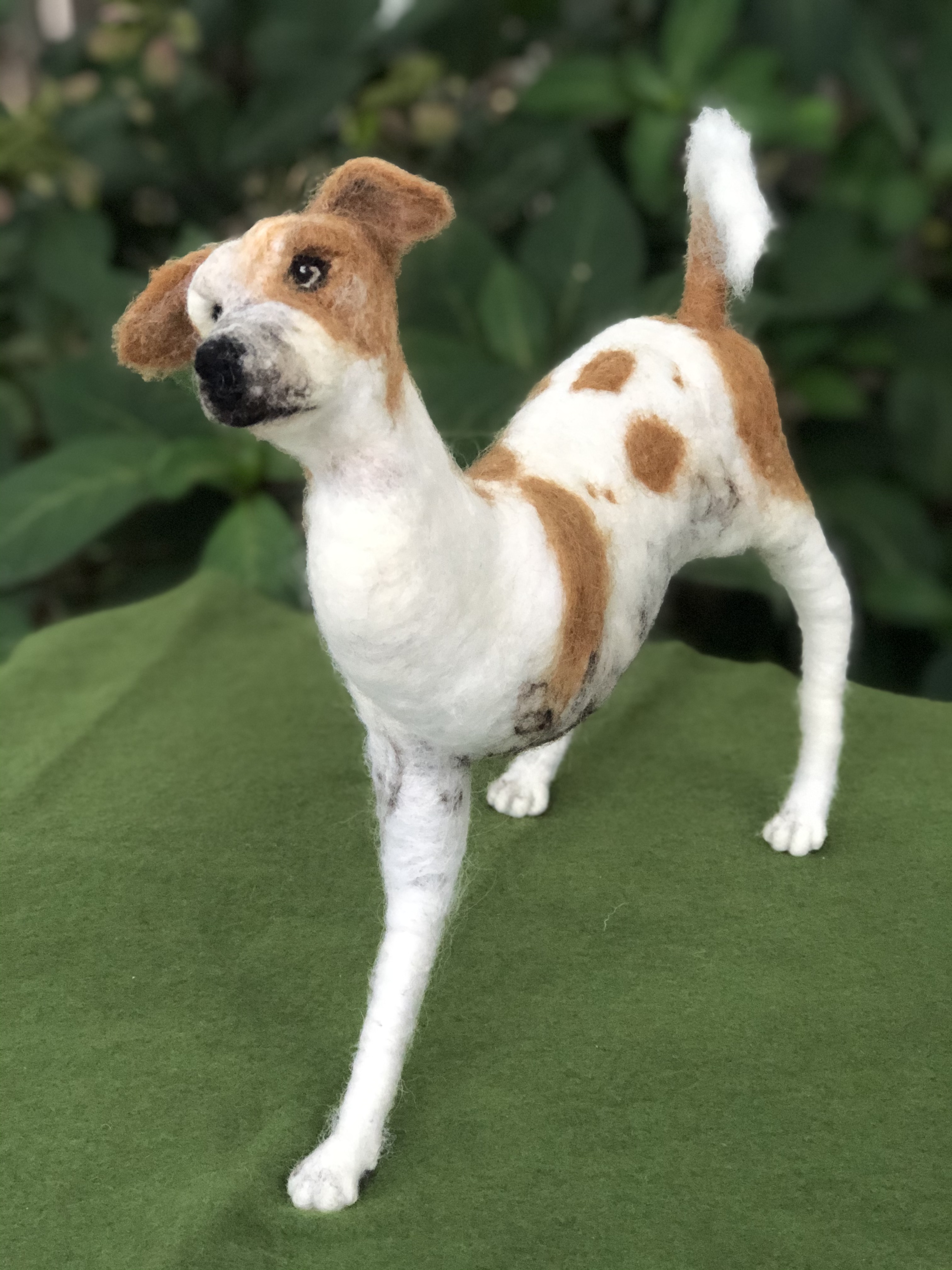 This is a portrait dedicated to Logan’s spirit of resilience. At three months of age, Logan was hit by a car while on the streets of India. Two surgeries were needed to amputate his injured limb. He now thankfully lives with us, and every day he embodies determination, love, and hope. He shines on all who meet him. Needle felted wool over a wire armature.