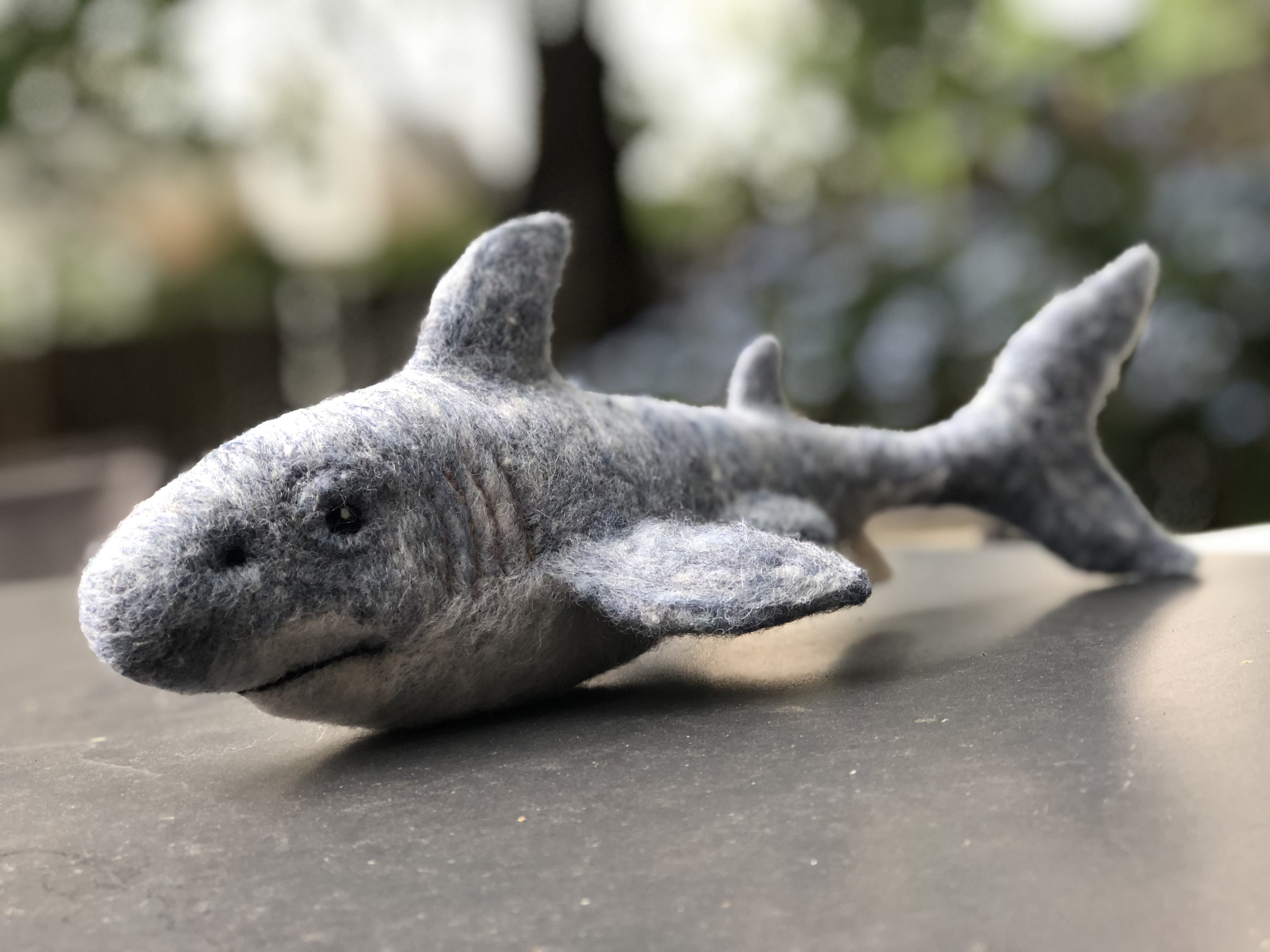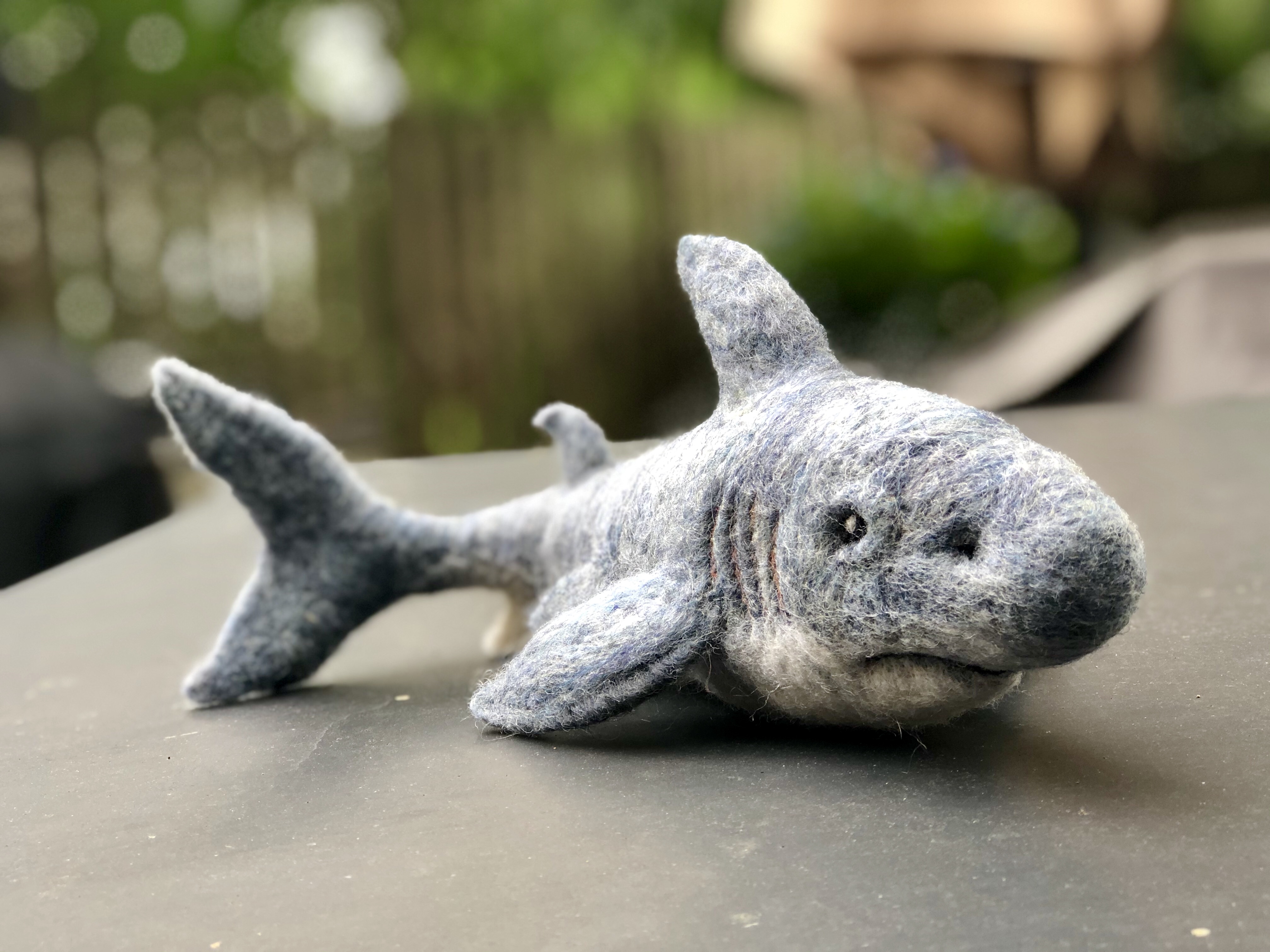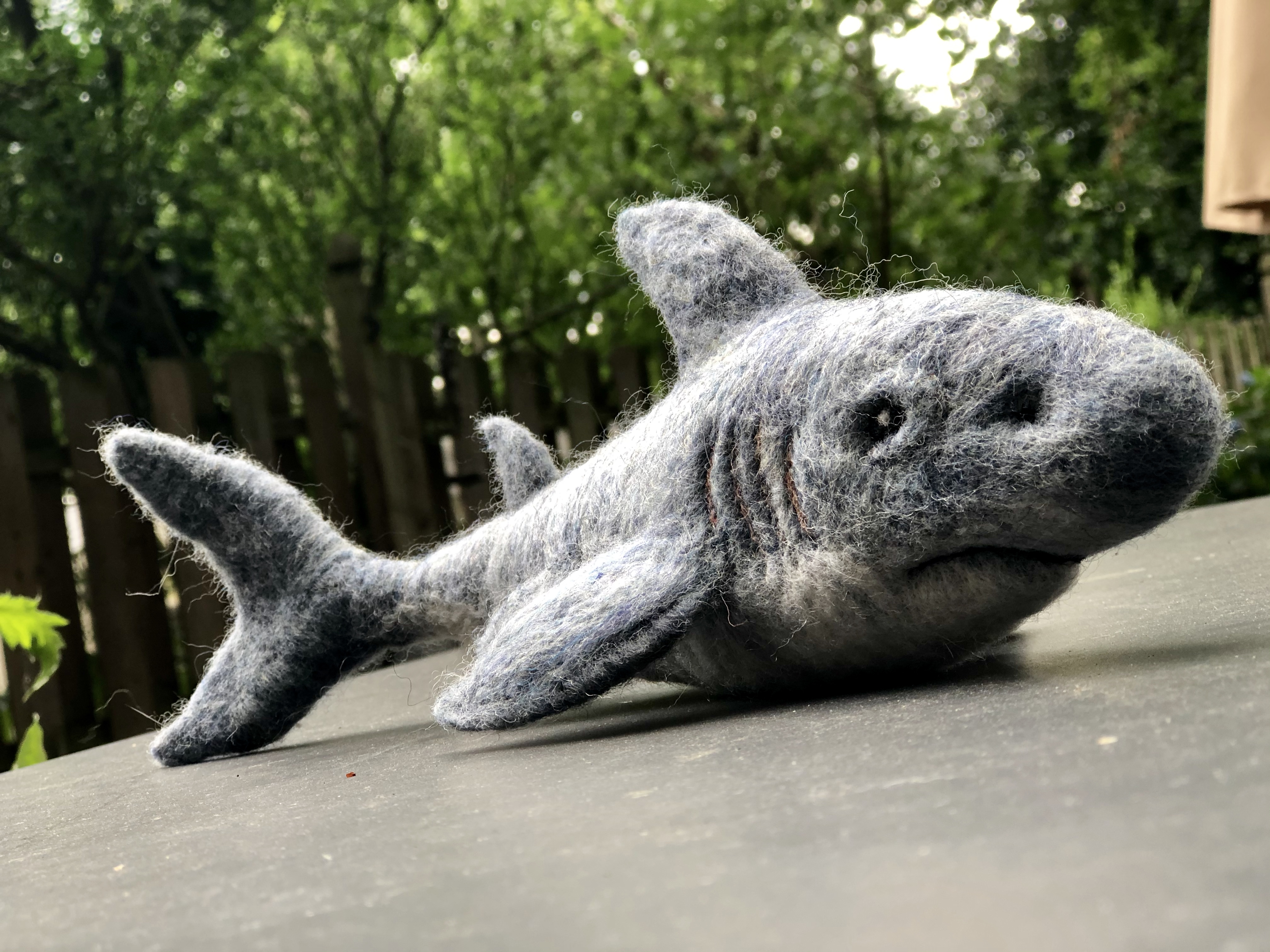 For my nephew Emmett, because he loves sharks. Needle felted wool over a wire armature.