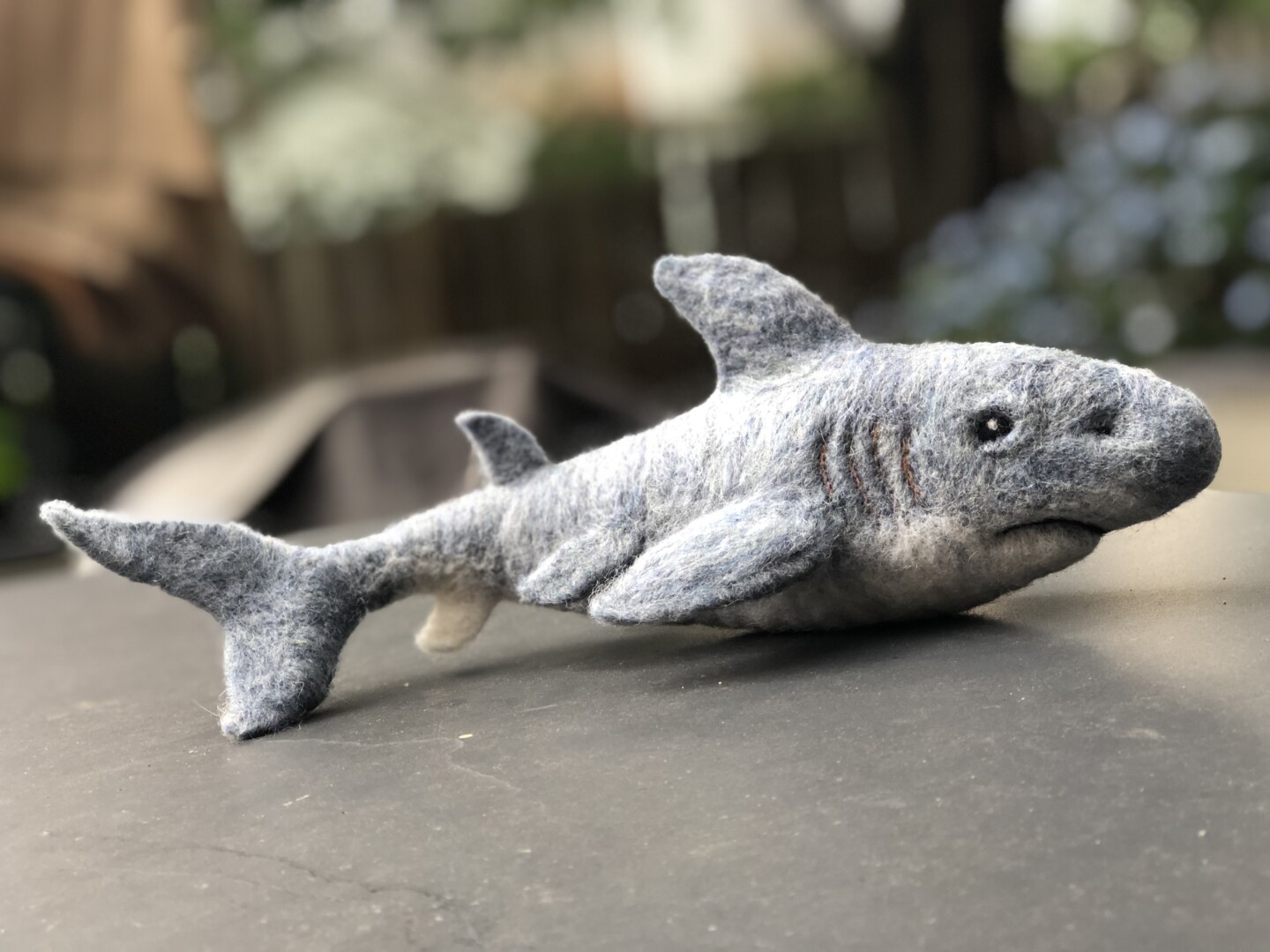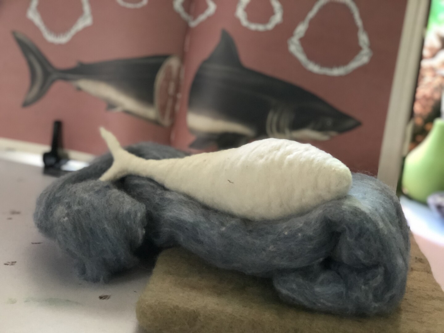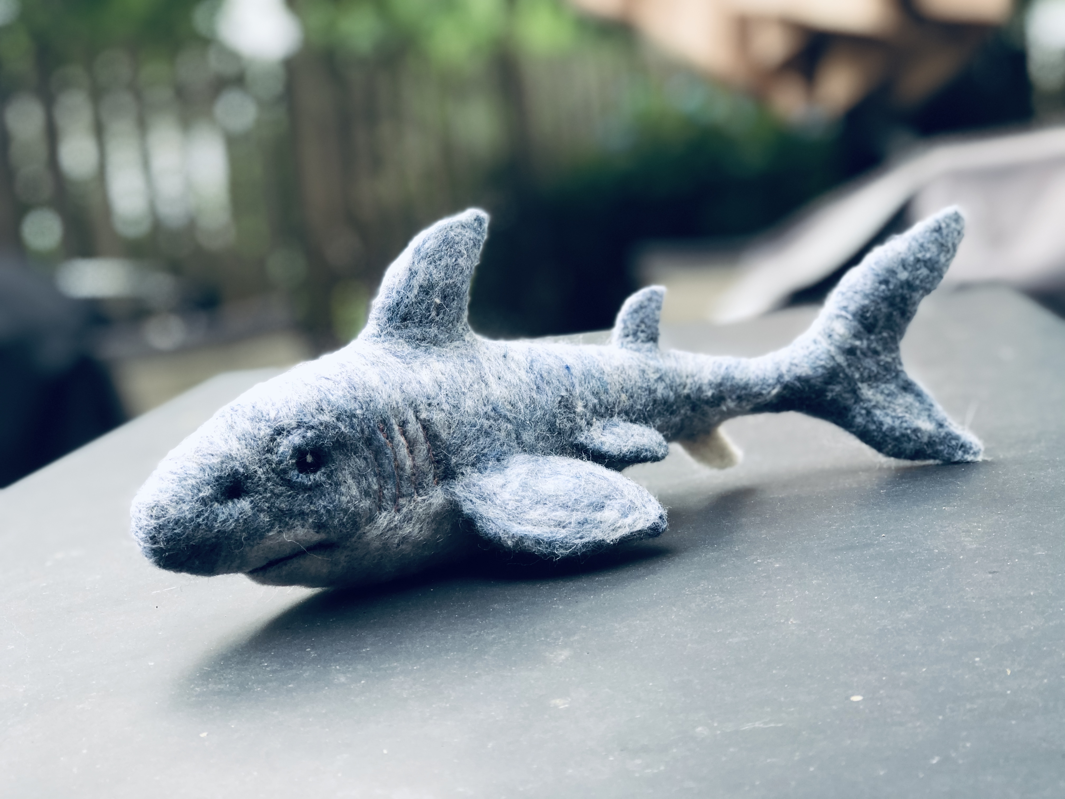 For my nephew Emmett, because he loves sharks. Needle felted wool over a wire armature.