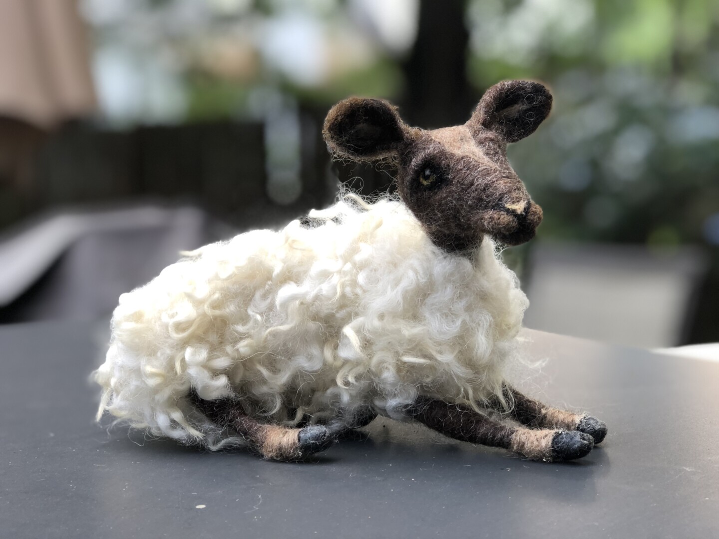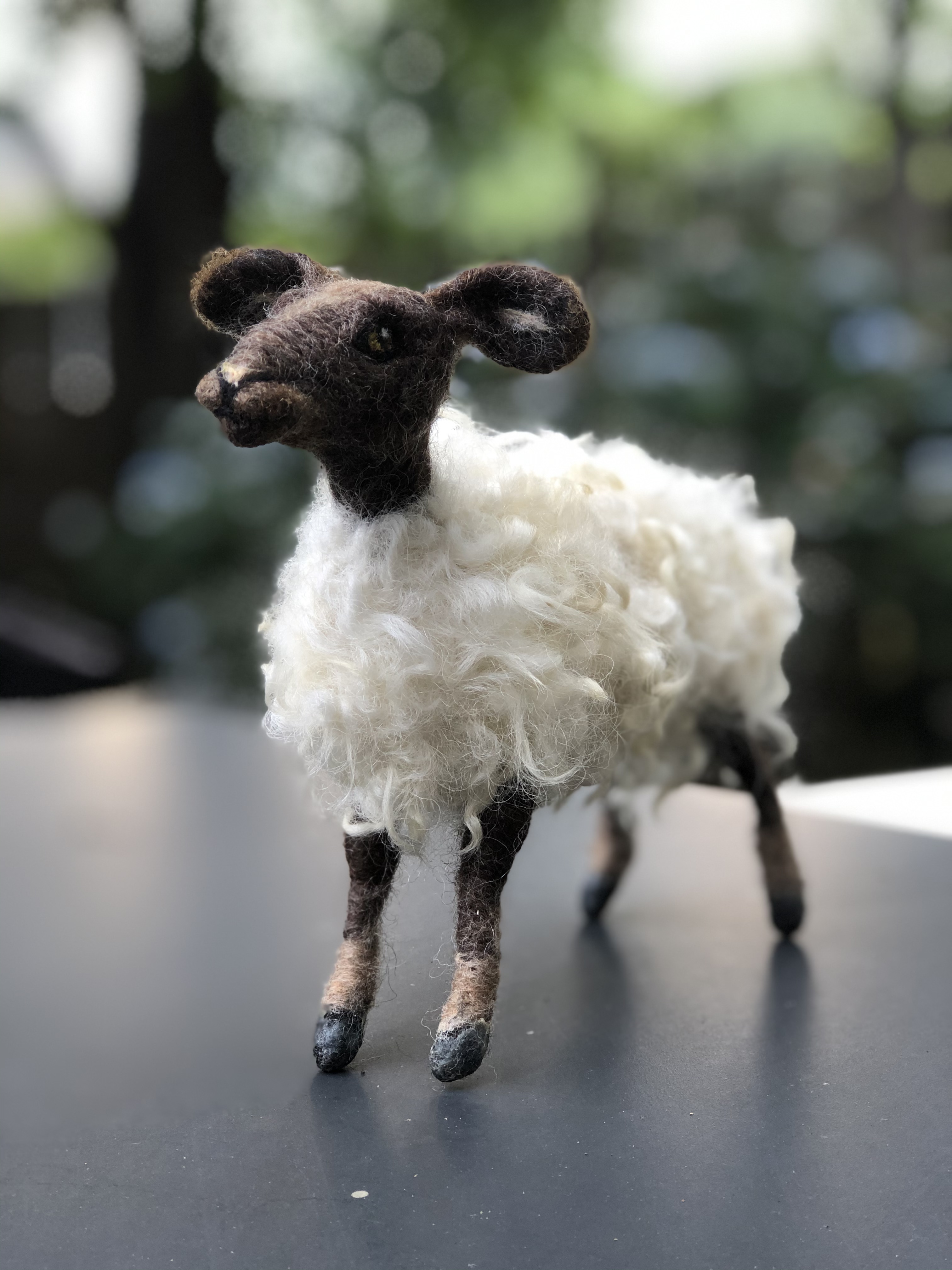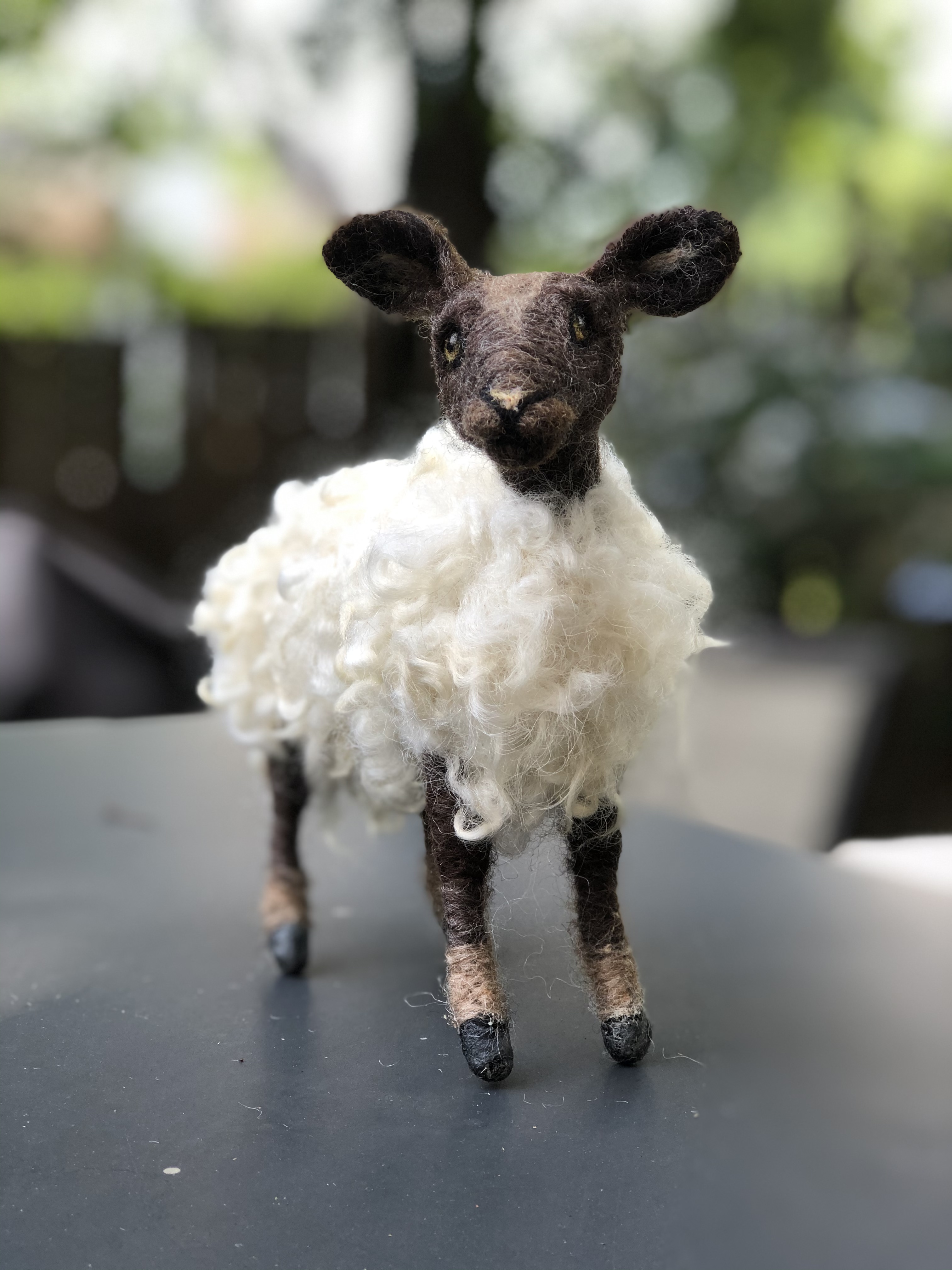 A needle felted mama sheep made for my good friend and second mother, Janette. Wool over a wire armature.